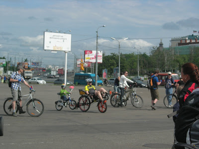 Так время поджимает, снова лосим в парк Горького, там через полчаса начнутся соревнования. Летим, вкручиваем (я даже обогнал "В"), время без 12 3, гонка должна была стартовать ровно в 3.